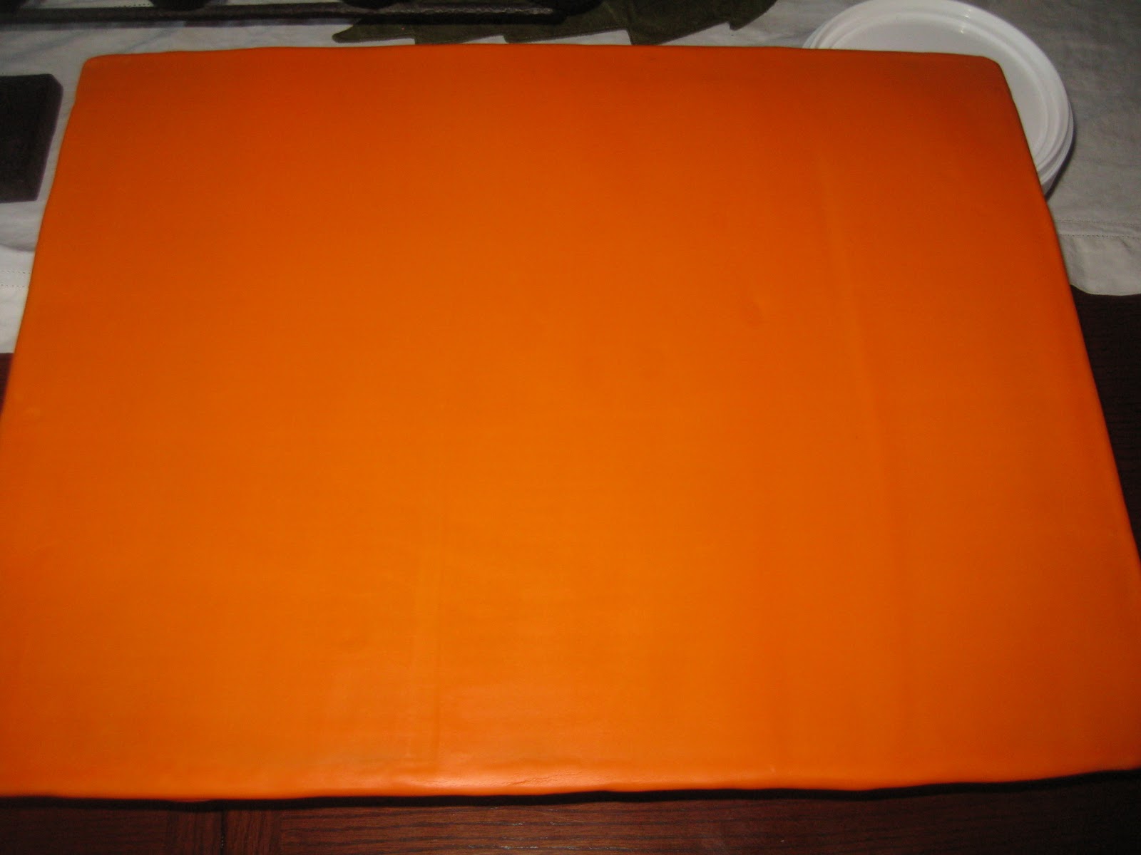 So keeping with my Halloween theme I pull out a ball of orange fondant. I bought some Duff's at the store because I had coupon. I have to admit the flavor of Duff's makes it pretty edible , but it's very soft and doesn't dry very quick or very hard. If you plan on using it for any accents you MUST use gumpaste.